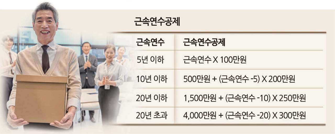 20년 초과 장기 근속자의 경우, ‘4000만원+300만원×(근속연수-20년)’ 공식을 따릅니다. 30년 근속이라면 7000만원의 공제가 가능하죠.