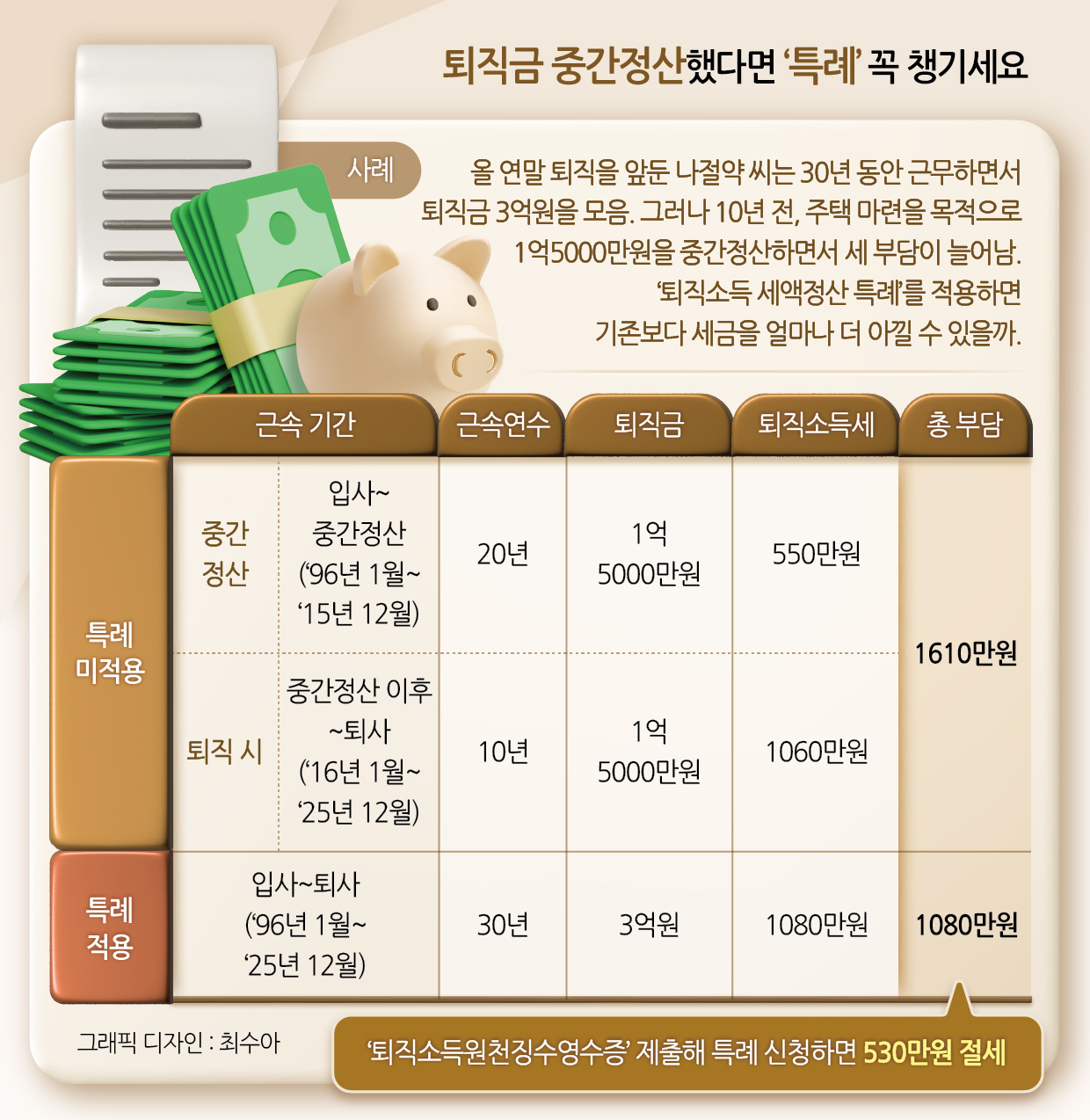 ![올 연말 퇴직을 앞둔 나절약 씨는 꼬박 30년을 한 직장에서 보낸 장기 근속자다. 그런데 세후 365 토토사이트이 예상보다 적다는 사실에 놀란 절약 씨. 10년 전 365 토토사이트 중간정산의 여파였을까. 그런데 이 서류 하나만 제출하면 내야 할 세금을 줄일 수 있다는데···. [챗GPT를 이용해 제작함]](https://wimg.heraldcorp.com/news/cms/2025/08/12/news-p.v1.20250804.4fc858bd55ff47c8bdee4fab61ede47f_P1.png)