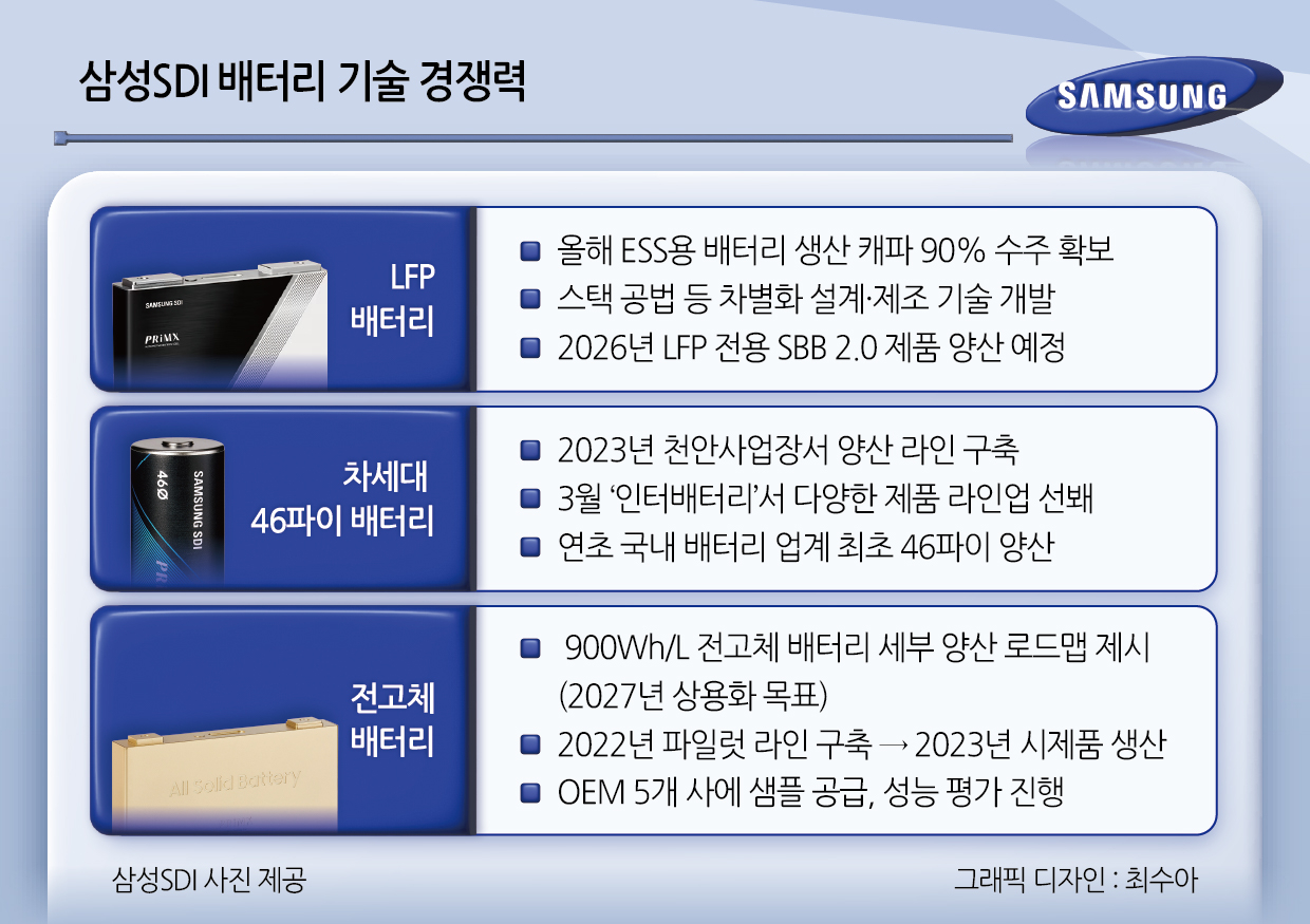 이러한 쉼 없는 투자는 고품질 배터리 개발 성과와 함께 사업 포트폴리오 확장으로 이어지고 있다. 토토사이트 테이블SDI는 하이엔드 시장을 겨냥한 기존 삼원계 NCA(니켈·코발트·알루미늄) 배터리와 더불어 중저가 시장을 타깃으로 한 LFP(리튬·인산·철) 배터리로 포트폴리오 확대를 꾀하고 있다.