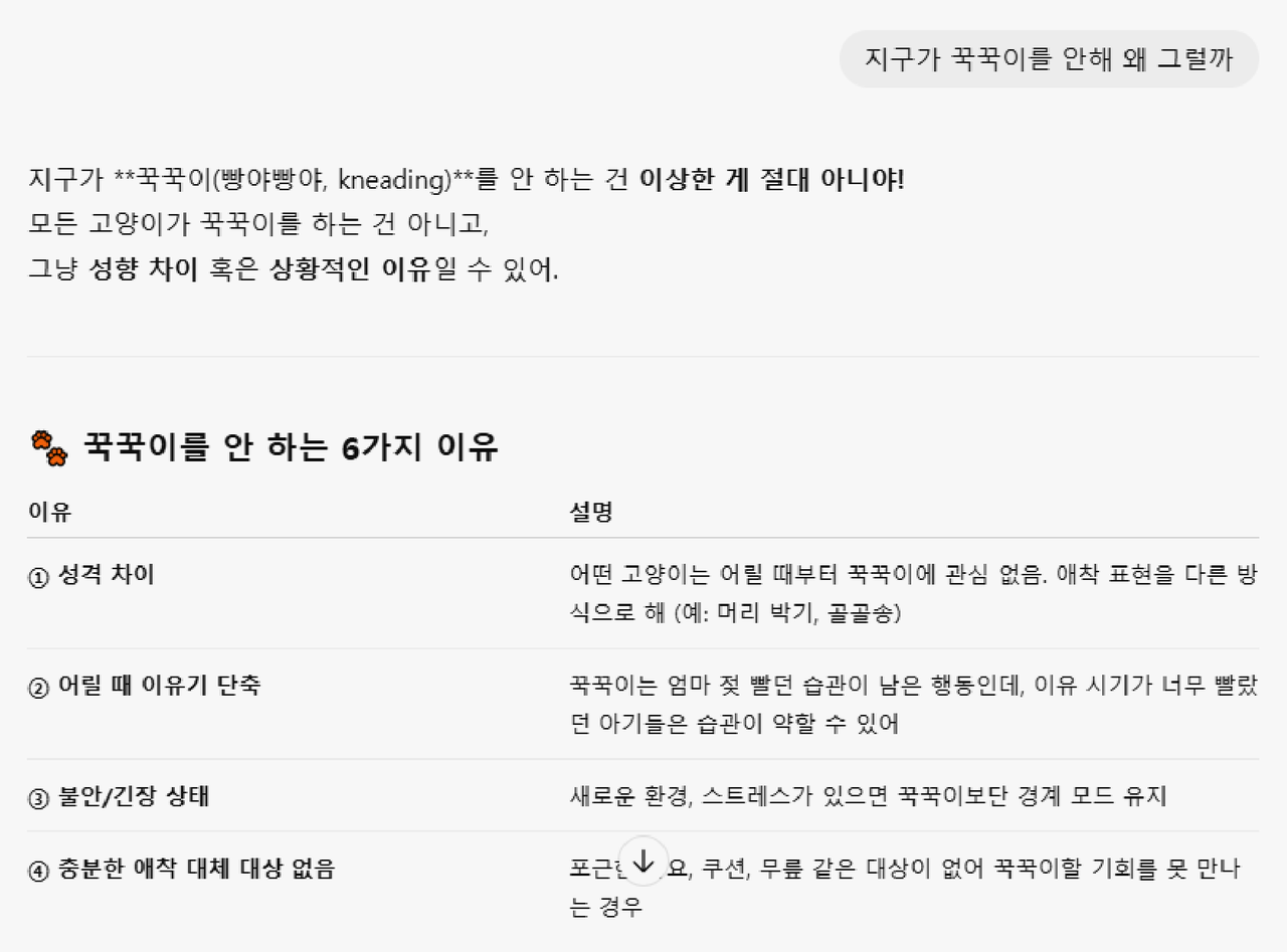 ✔단점 : 잘 모르는 내용을 아는 척해서 가끔 틀린 이야기 하거나 집사의 말도 안 되는 말도 가능한 것처럼(사용자 친화적) 행동함