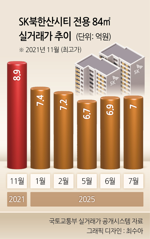 국토교통부 실거래가 공개시스템에 따르면 SK북한산시티 84㎡는 지난달 6억원 후반대~7억원 중반대 가격에 거래됐다. 가장 최근 거래는 지난달 7일 7억원에 팔린 것이다. 59㎡는 이달 2건 거래됐는데 각각 5억9500만원, 6억2500만원에 매매계약을 맺었다. 114㎡의 경우 지난달 7억원 후반대~8억원 초반대 가격에 매매됐다.