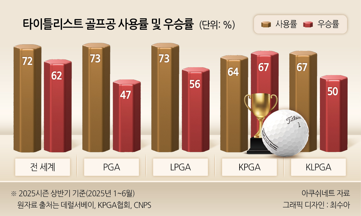 타이틀리스트 클럽도 기록 행진을 하고 있습니다. 올 상반기 시즌 주요 투어에서 드라이버, 아이언, 유틸리티 등 대부분의 부문에서 사용률 1위를 기록했습니다. 특히 드라이버는 PGA와 KPGA 투어에서 우승률 1위에 올라섰습니다.