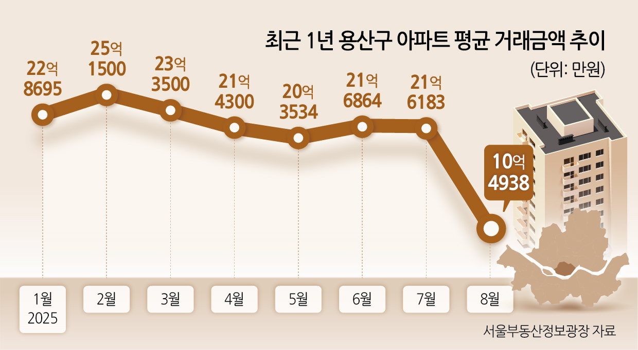 4일 서울레프레 토토사이트정보광장에 따르면 지난달 서울 용산구에서 거래된 아파트 평균가격(3일 기준)은 10억4938만원으로 전달(21억6183만원)보다 11억1200만원(51.4%) 떨어진 것으로 집계됐다. 이는 2017년 5월(10억1578만원) 이후 8년여 만에 최저치다. 그동안 용산구 평균 거래가가 20억원대를 기록했던 점을 고려하면 매우 이례적이란 평가가 나온다.