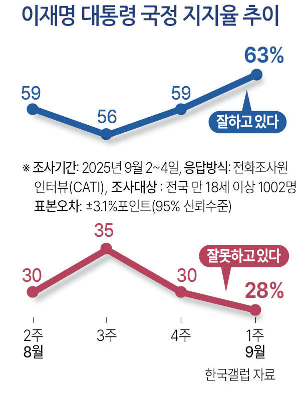 이날 발표된 한국갤럽 정례 조사는 이동통신 3사 제공 무선전화 가상번호 무작위 추출을 통한 전화조사원 인터뷰(CATI) 방식으로 실시됐다. 응답률은 12.1%다. 자세한 내용은 중앙선거여론조사심의위원회 홈페이지에서 확인할 수 있다. 안대용 기자