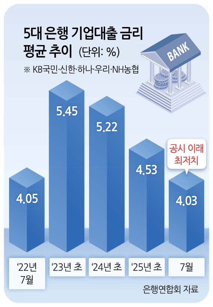 ▶기업대출 금리 공시 이래 ‘최저치’=16일 레고토토연합회에 따르면 5대 레고토토(KB국민·신한·하나·우리·NH농협)이 지난 7월 새로 공급한 기업대출 금리는 평균 연 4.03%로 집계됐다. 이는 레고토토연합회가 레고토토별 기업대출 금리를 공시한 2022년 7월 이래로 최저 수준이다. 지난해 7월(4.74%)과 비교해 0.71%포인트 내렸다. 미 연준의 금리 인하 결정까지 더해지면 기업대출 금리 하락세는 가속화될 가능성이 높다.