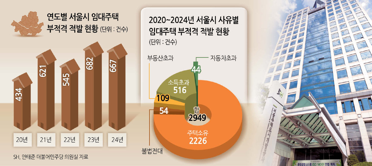 SH 관계자는 “2020년 대비 2024년 말 SH 골드문 토토사이트 먹튀주택 관리물량이 약 3만 가구 이상 증가한 점, 주택을 구입하는 임차인의 수가 과거보다 많아져 주택소유에 따른 부적격 적발 수가 증가한 걸로 파악 중”이라고 설명했다.