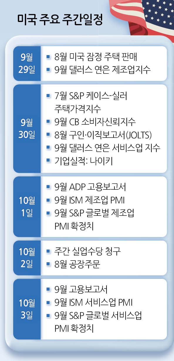 연방준비제도(Fed) 인사들의 연설도 잇따른다. 크리스토퍼 월러 이사(29일), 존 윌리엄스 뉴욕 연은 총재(29일·10월 3일), 필립 제퍼슨 부의장(30일·10월 3일) 등이 공개석상에 오를 예정이다. 점도표에서 드러난 위원 간 온도차가 뚜렷한 가운데 각 인사의 발언은 향후 통화정책의 단서가 될 것으로 보인다.