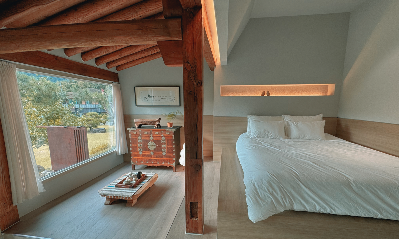 우리 멍이와 신나게 사진 찍고 열심히 걸었으니, 이제 편안한 휴식도 필요하겠지? 그래서 찾아온 곳이야. ‘휴식’이라는 단어에 딱 맞는 숙소지! 진안고원의 맑은 공기 속, 한옥의 고즈넉함과 현대적인 인테리어가 어우러져 정말 멋지더라고.
