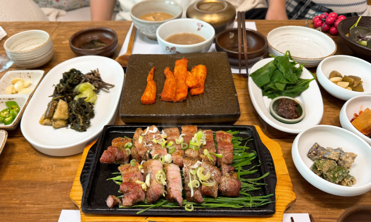 여행의 하이라이트는 바로 석식이었어. 숙소 바로 옆(걸어서 1분!)에 사장님이 함께 운영하시는 40년 전통의 식당이 있는데, 프라이빗한 룸에서 멍이와 편하게 식사할 수 있었어. 모든 음식이 정말 정갈하고 맛있더라고. 사장님께서 고추장, 된장까지 직접 만드신대! 속도 편하고, 제대로 대접받는 기분이었어. 이건 꼭 추가해서 먹어보는 걸 추천해! 무료로 제공되는 조식도 최고야. 원하는 시간에 방으로 가져다주시는데, 구수한 누룽지가 시골 할머니가 차려주신 아침 밥상 같았지.