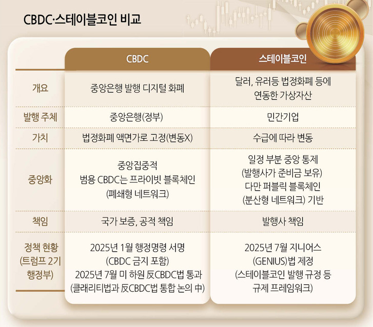 스테이블코인의 90%는 가상자산을 결제하는 매개체로 쓰이지만 실물경제에서도 활용되고 있다. 국제결제은행(BIS)이 184개국의 가상자산 국경 간 흐름(2017년 1분기~2024년 2분기)을 분석한 결과, 비트코인,이더리움, USDT, USDC 등 4대 가상자산의 국경 간 자금이동은 2021년 2조6000억달러(약 3668조원)로 가장 높았다. 특히 달러 스테이블코인의 비중이 절반을 넘었다. 스테이블코인 거래규모는 이미 전통 결제망 규모를 넘어섰다. 지난해 스테이블코인 연간 거래액은 15조6000억원으로 비자(VISA) 거래규모의 119%, 마스터카드(Mastercard) 거래규모의 200%에 달한다. 지난해 미 재무부 보고서는 “스테이블코인과 미국채(T-Bill)와 높은 연관성에 따른 위험이 있다”고 지적했지만 스테이블코인은 가치 안정성을 인정받고 화폐로서 기능을 하고 있다.