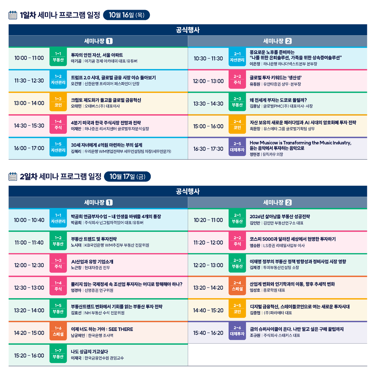 주최 측은 “이번 행사는 재테크에 관심 있는 일반 투자자부터 금융업계 관계자까지 모두가 참여해 정보를 나누는 장이 될 것”이라며 “다양한 프로그램을 통해 생활 속 금융의 접근성을 높이고, 자산관리에 실질적인 도움을 주는 축제로 만들겠다”고 밝혔다.