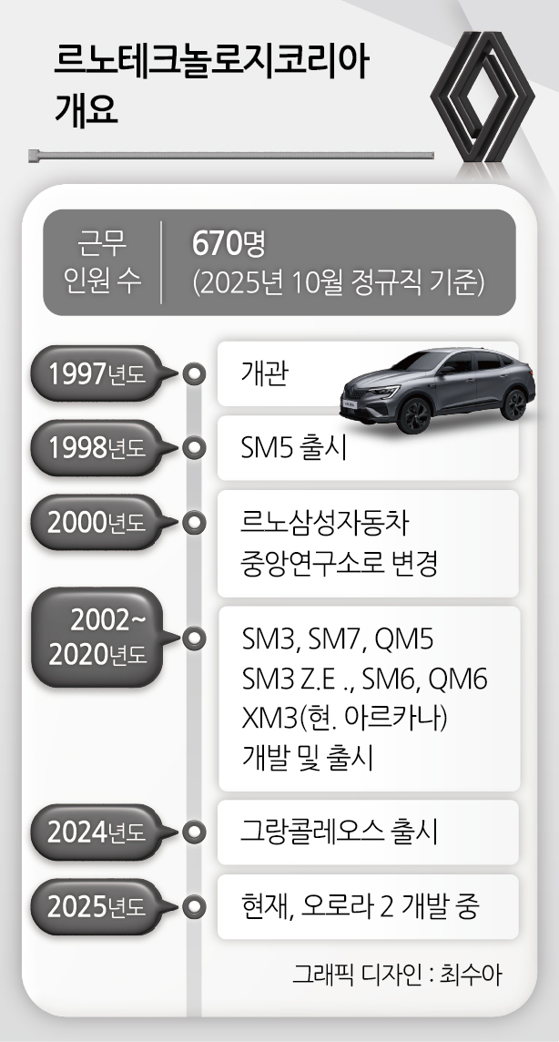 이처럼 한국 연구소의 완성차 기술력은 이미 해외 시장에서 성과로 이어졌다. 한국에서 개발 및 양산된 ‘아르카나(수출명 XM3)’는 유럽에서 출시 이후 ‘가장 전기차에 가까운 하이브리드’로 평가받으며 프랑스 등 주요 시장에서 연간 7만대 이상 판매되는 히트 모델로 자리 잡았다.