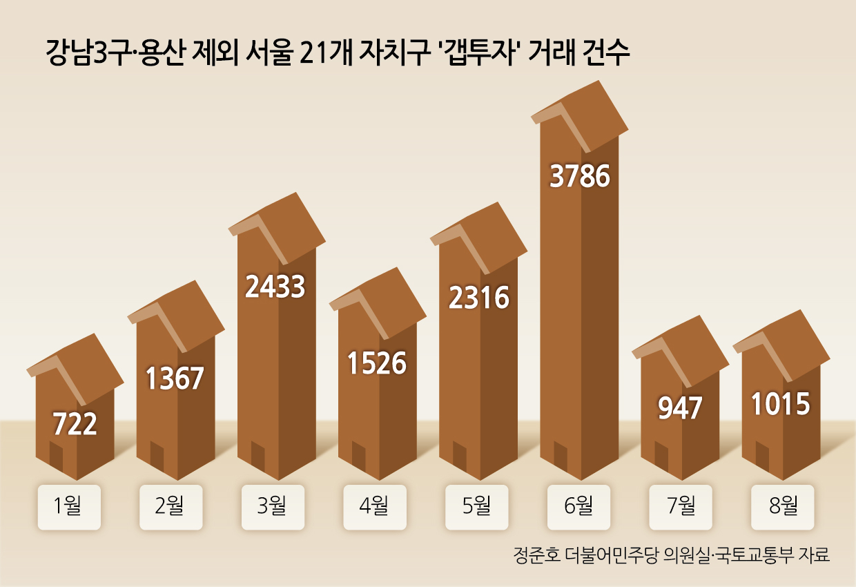 15일 헤럴드경제가 정준호 더불어민주당 의원실을 통해 제출받은 ‘1~8월 주택 매매 자금조달계획서’ 자료를 분석한 결과 지난 1~8월 서울 25개 자치구에서 임대보증금을 승계해 주택을 취득한 거래 건수는 총 1만9596건으로, 전체(4만9809건)의 39.3%에 달하는 것으로 집계됐다.