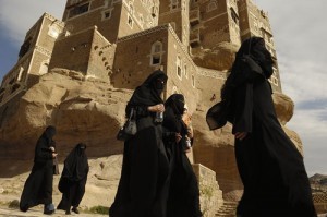 [사진설명: 세계 136개 국가중 최악 여성인권국인 예멘에서 부르카로 온몸을 가린 여성들이 길을 걸어가고 있다.]