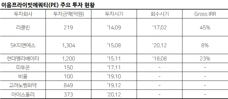 이음PE는 2014년 발광다이오드(LED) 조명업체 선일일렉콤(155억원)을 시작으로, 국내 1위 음식폐기물 처리업체 리클린(219억원), 조선 기자재 제조업체 선보공업·선보하이텍(600억원) 등 토토사이트 은행 조회 속도를 높였다. 2015년은 토토사이트 은행 조회 규모를 천억원대로 키우며 PEF 시장에 존재감을 알렸다. SK건설 U-사업부(1600억원) 인수가 대표적이다. 이어 전환사채(CB) 토토사이트 은행 조회로 23.3%라는 IRR을 기록한 현대엘리베이터(1200억원) 토토사이트 은행 조회도 그해 집행됐다.
