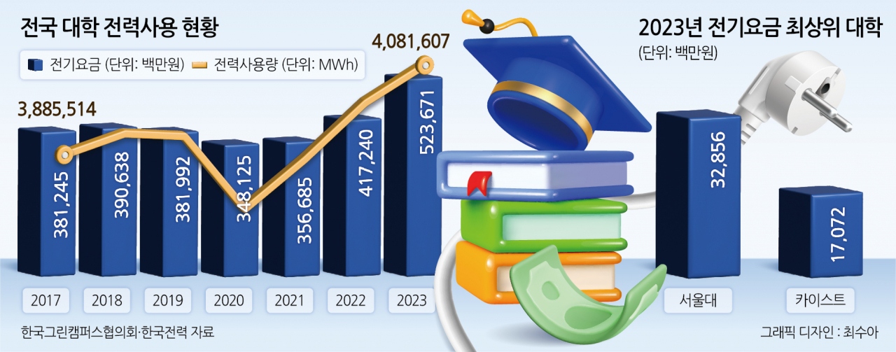 실제로 연구개발이 활발한 대학일수록 토토사이트 운영자 검거 부담도 높았다. 지난해 서울대가 쓴 전기는 22만6836MWh였으며 토토사이트 운영자 검거는 328억원을 부담했다. 카이스트는 12만756MWh를 쓰고 170억원을 부담했다.