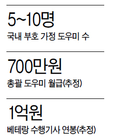 채용조건은 까다롭다. 반찬 몇가지로는 요리 도우미를 할 수 없고 한식과 양식, 일식 등에 능해야 부엌에 설 수 있다. 집안에 들이는 사람인 만큼 ‘믿을 만한 사람의 소개나 추천’도 필수다.